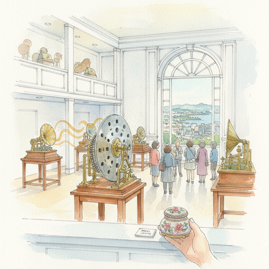 すると、空間に澄み渡るような音色が広がり始めます。金属の歯が奏でる音は、デジタル音源では決して表現できない温かみのある響きを持っています。クラシック音楽の名曲が、まるで100年以上の時を超えて私たちの耳に届くような不思議な感覚。パートナーと顔を見合わせると、互いの目に感動の色が浮かんでいるのが分かりました。