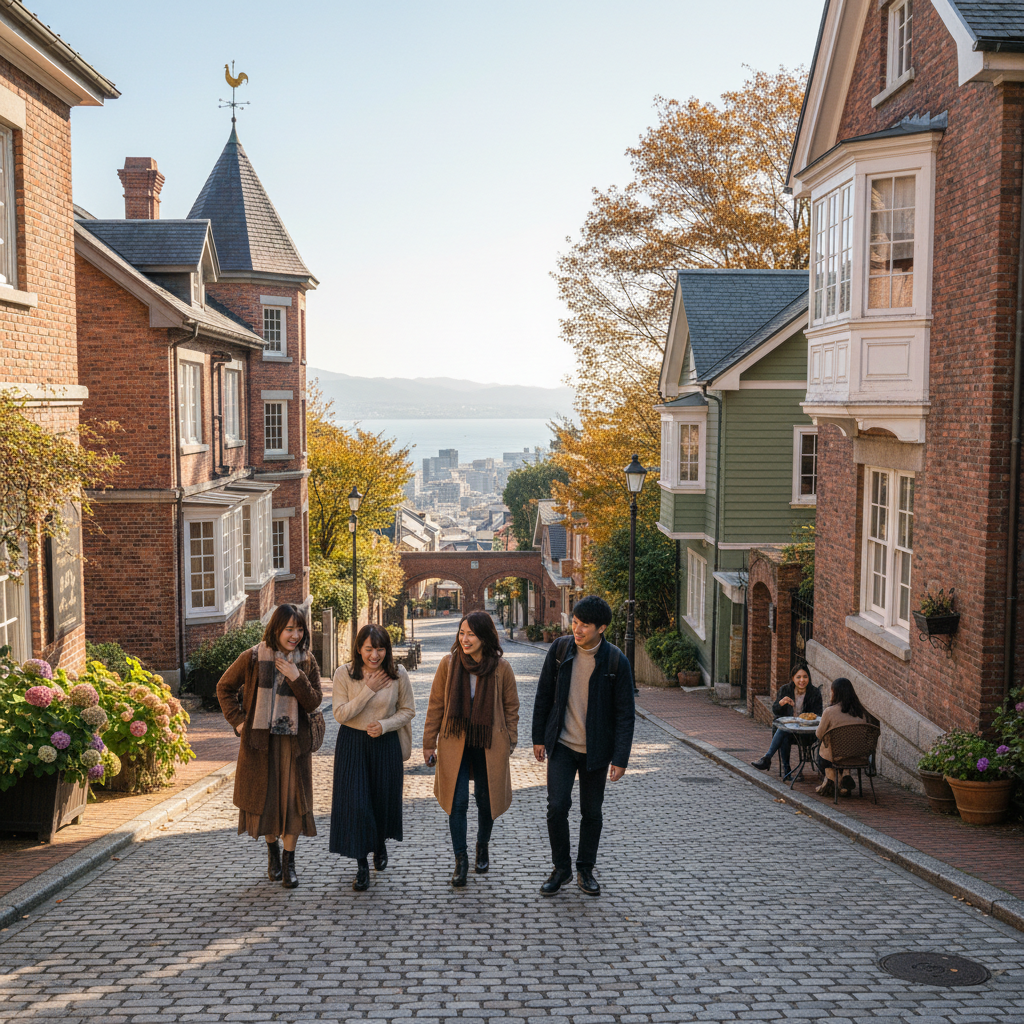友達3人と神戸に来たのは11月の土曜日で、朝10時くらいだったかな。駅降りてすぐ「異人館行こうぜ」って誰かが言い出して、なんとなくみんなでついていったんだけど、これが思った以上に坂。Google Mapで見たときは「ちょっと歩くだけでしょ」って感じだったのに、実際に登ってみるとこれがもう、太ももにくる。運動不足を痛感する。