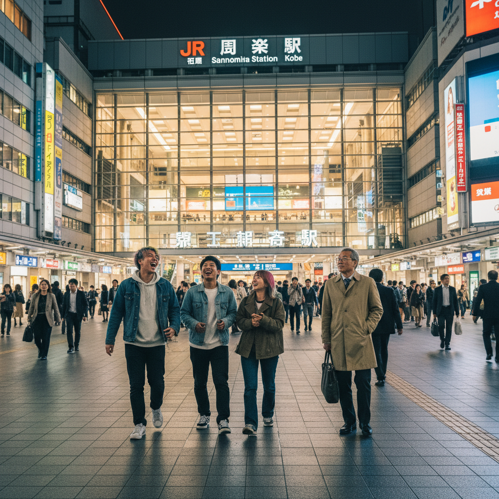 5人か6人か、数えようとした時にはもう遠くて、声だけが残っていた。金曜の夜8時過ぎ。あの時間帯の三宮って、いつもこうだ。人がいるのに寂しいというか、賑やかなのに自分だけ取り残されてる感じがする。彼らは多分、これから居酒屋かカラオケに行くんだろう。スマホの画面を覗き込みながら、誰かが「ここ曲がるんちゃう?」って言ってた。関西弁が混ざると、なんだか距離が近く感じるのに、実際には何の接点もない。