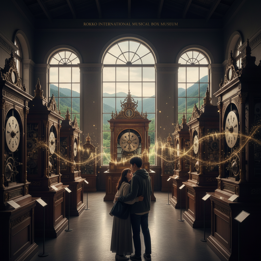 正直に言うと、オルゴール館なんて渋すぎるだろうと思ってた。デートスポットとしてどうなんだって。でも彼女が行きたいって言うから、まあいいかと六甲ケーブルに乗って登っていった。11月の午後で、ケーブルカーの窓から見える神戸の街はもう薄暗くなりかけていて、海の向こうまで灰色っぽい光が広がってた。山の上は思ったより寒くて、薄手のジャケット一枚じゃ完全に失敗だったなと後悔しながら、バス停からオルゴール館まで歩いた。途中の木々の間を風が抜けていく音が、やけに大きく聞こえる。