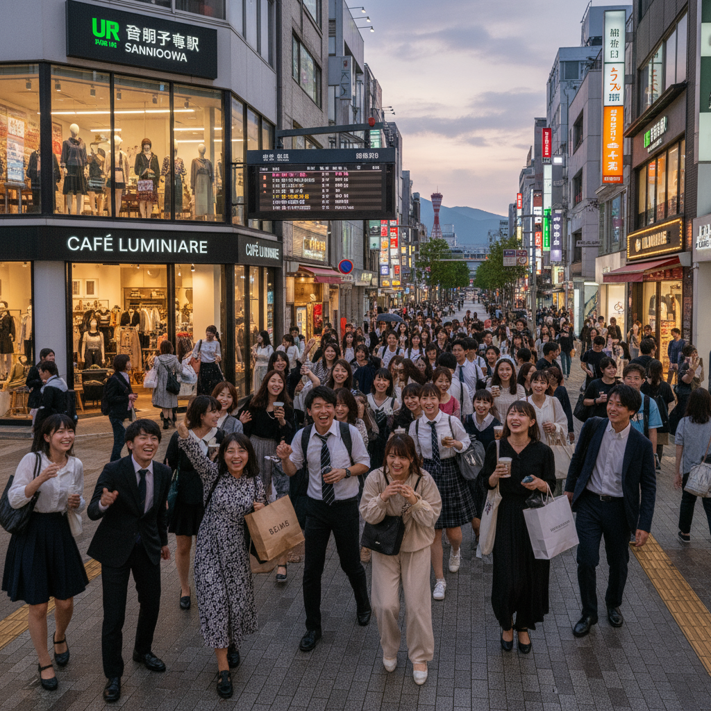 神戸の中心地、三宮の街を歩いていると、まるで時代のエネルギーそのものが流れ込んでくるような感覚に包まれます。JR三ノ宮駅から地下鉄三宮駅、阪急神戸三宮駅へと続く動線には、朝から晩まで途切れることなく若い人たちの波が押し寄せています。彼らの笑い声、足音、会話の断片が重なり合い、この街独特の賑やかな音楽を奏でているのです。