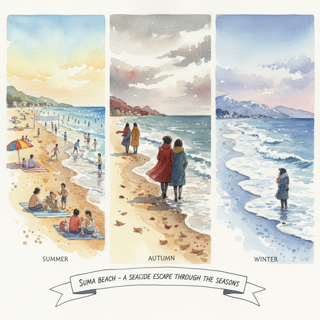 神戸の須磨海岸は、派手な観光地ではないかもしれない。しかし、だからこそ本物の海の魅力を感じることができる場所なのだ。夏の賑わいも、冬の静けさも、どちらも須磨海岸の真実の姿である。季節を越えて何度でも訪れたくなる、そんな魅力がこの海岸にはある。