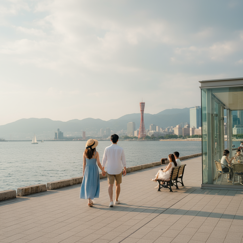 神戸という街は不思議な魅力を持っている。山と海に挟まれたコンパクトな街並みは、歩いているだけで景色が次々と変わり、飽きることがない。高層ビルが立ち並ぶエリアを抜けると、突然視界が開けて海が現れる。その瞬間の開放感は、何度訪れても新鮮な驚きがある。今日もまた、ビルの合間から覗く青い海面を見つけたとき、隣を歩く彼女が小さく声を上げた。「見えた」と。その声には、まるで宝物を見つけた子どものような喜びが含まれていた。