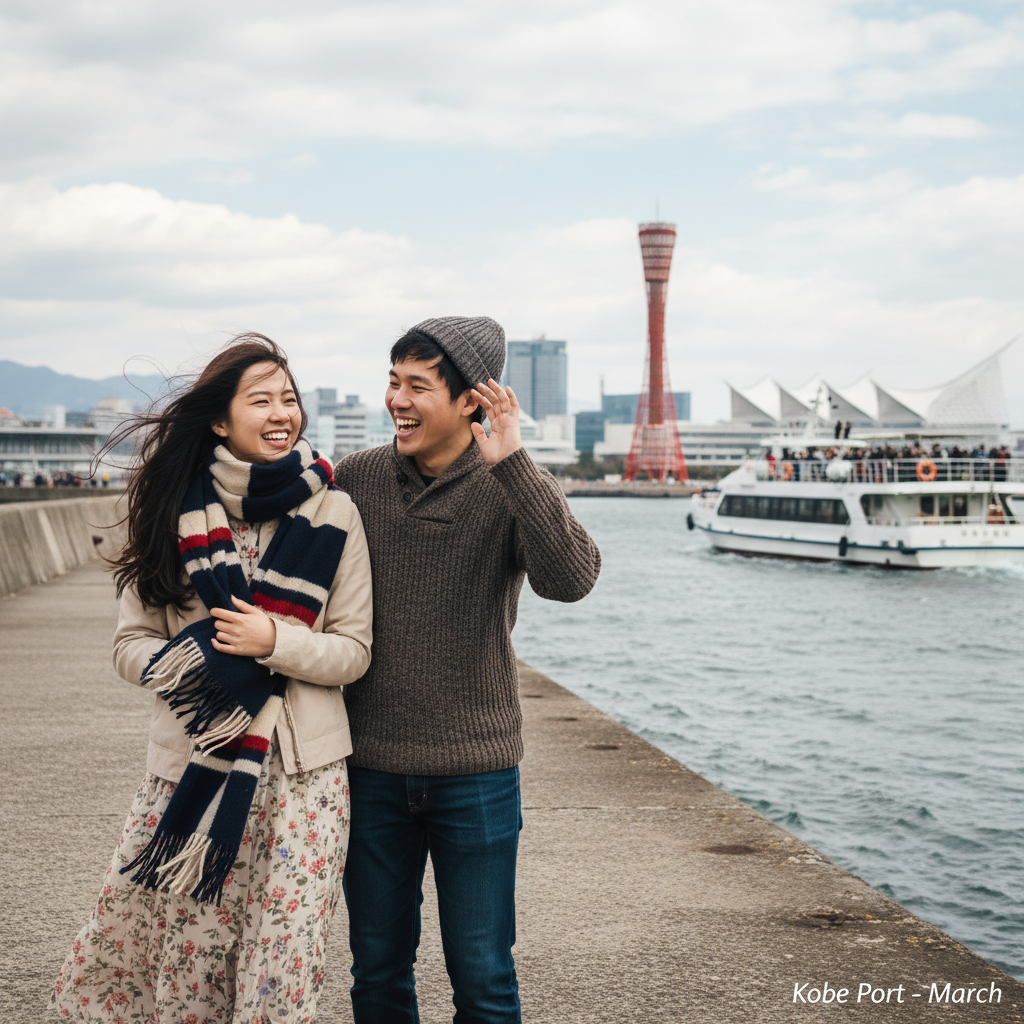 彼女が「散歩しよう」って言い出したのは確か土曜の昼過ぎで、僕は正直ソファから動きたくなかった。でも断る理由も特になくて、気づいたらメリケンパークあたりをふらふら歩いてた。海沿いの遊歩道は人がまばらで、観光客らしきカップルが数組いるくらい。ベンチに座ってる老夫婦が鳩にパンをやってて、鳩が無駄に増えてる。あれ、本当はダメなやつだよなって思いながら通り過ぎた。