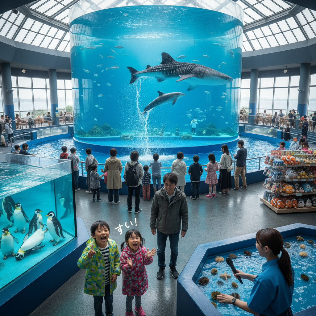 今日も夕暮れ時の水族館には、「楽しかった!」という子供たちの声が響いています。明日も、また新しい家族の思い出が、ここで紡がれていくことでしょう。