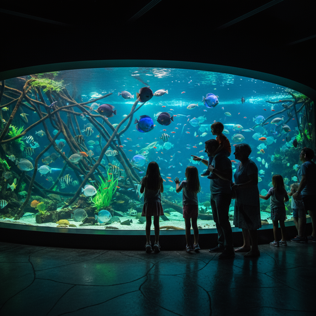 チケットを手に入れ、いよいよ館内へ。最初に目に飛び込んできたのは、大きな「アマゾン川の生態系」を再現した水槽でした。透明なガラスの向こうで、カラフルな熱帯魚たちが優雅に泳ぎ回っています。小さな男の子が「あっ!ピラニアだ!」と指さす傍らで、お父さんが魚の特徴を熱心に説明している姿が印象的でした。